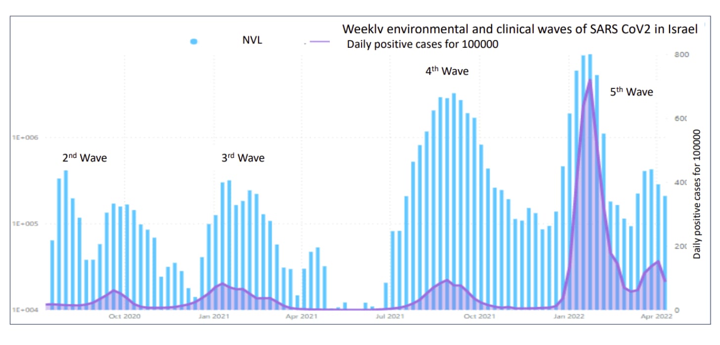 Below is the Israeli wastewater. The 3rd wave is alpha, 4th is Delta, 5th is Omicron. It’s a LOG scale so Delta was 10X higher in highly vaccinated Israel. So the Cleveland Clinic study, other studies, and surveys were all correct: