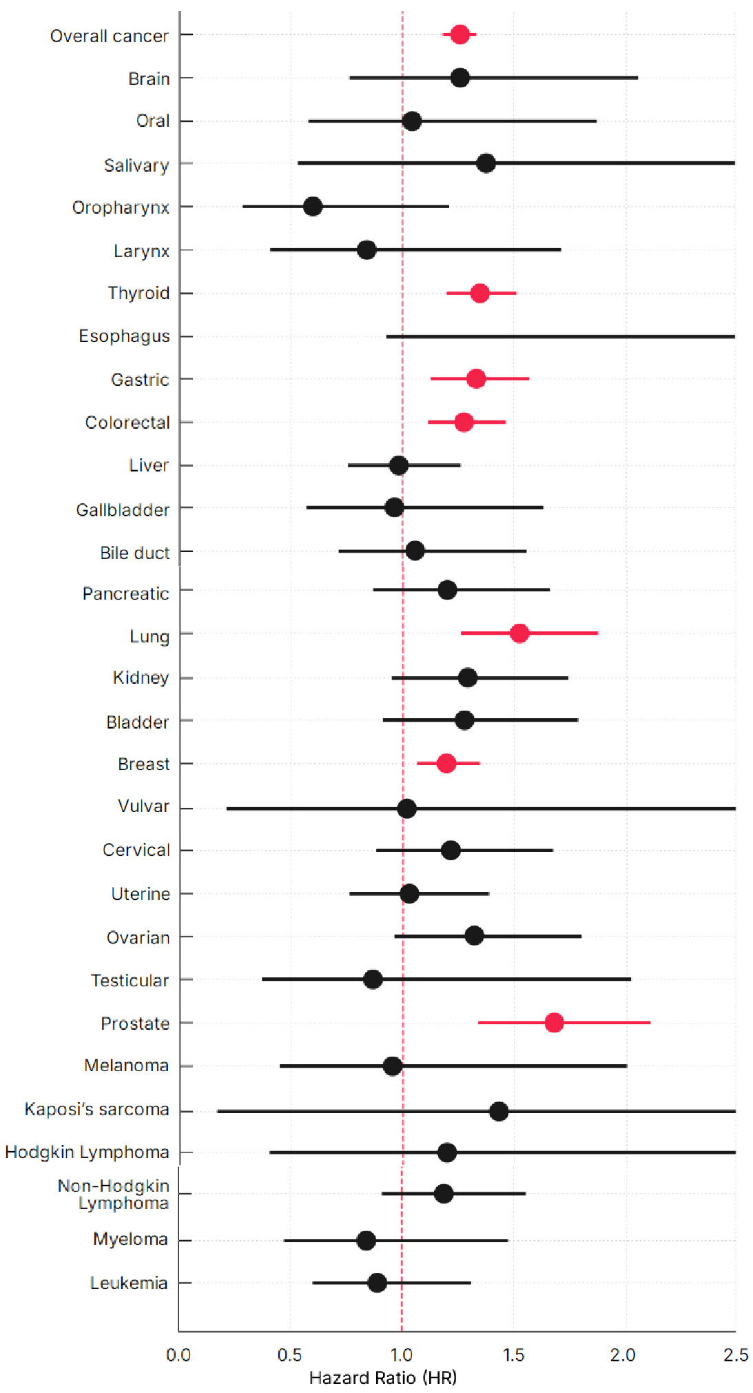 ‘Vaccinated males were more vulnerable to gastric and lung cancers, whereas vaccinated females were more susceptible to thyroid and colorectal cancers.’