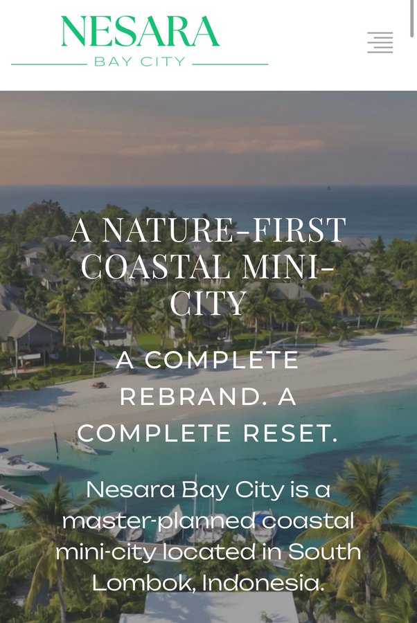The development will now be known as Nesara Bay City, reflecting a decisive break from the past and a move toward a more grounded, environmentally integrated mini-city designed specifically for Lombok.