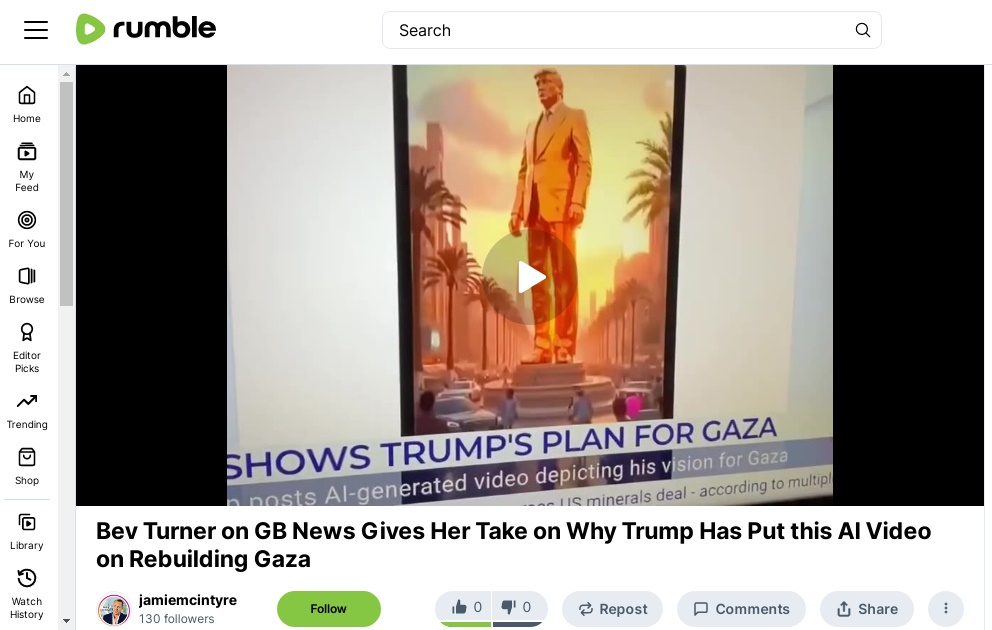 Bev Turner on GB News gives her take on why Trump has put this AI video on rebuilding Gaza.