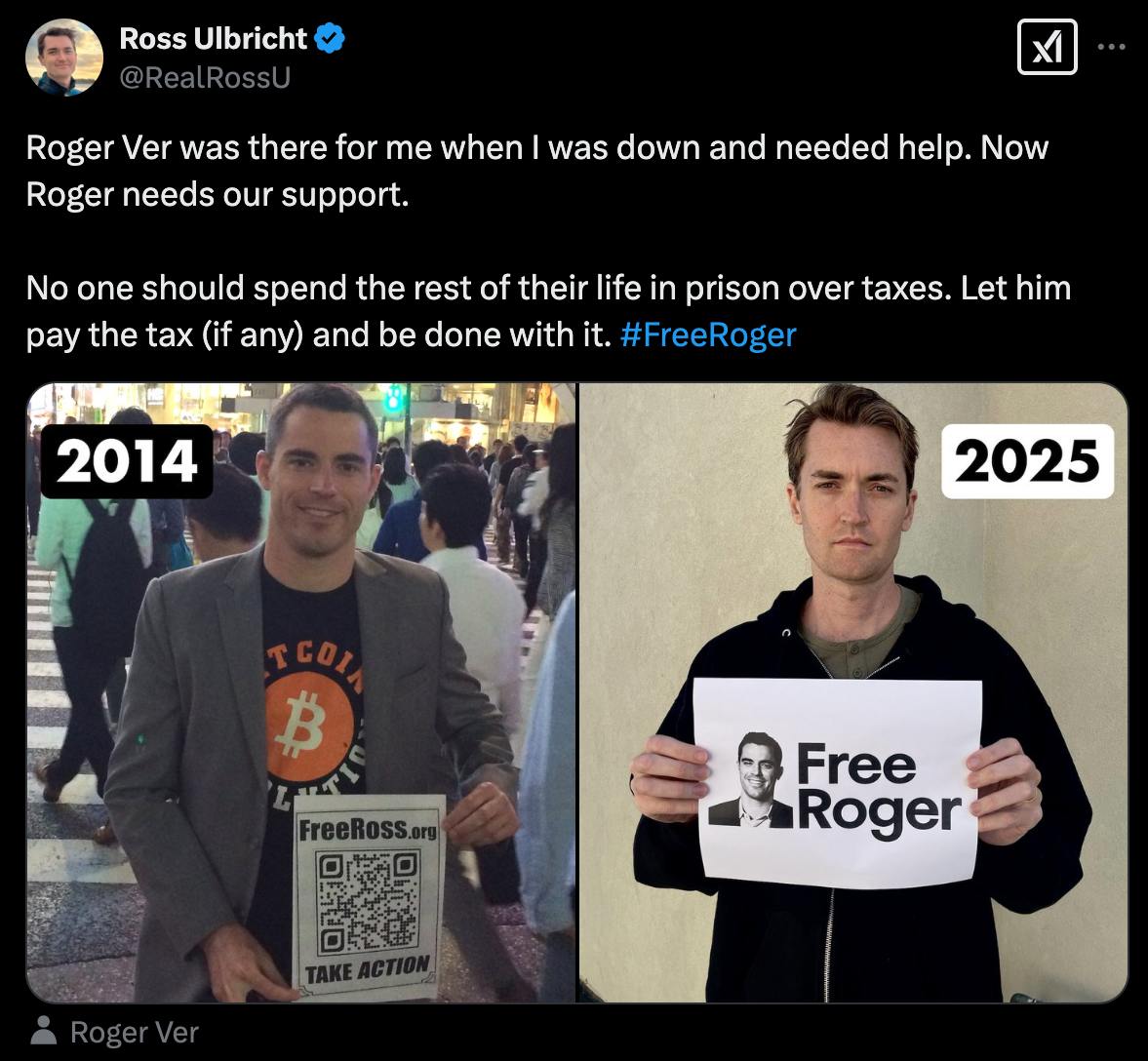 Silk Road founder Ross Ulbricht, pardoned by Donald Trump, campaigns for the freedom of ‘Bitcoin Jesus’ Roger Ver — on the grounds that ‘No one should spend the rest of their life in prison over taxes’